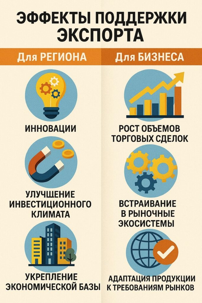 Власов отметил, что для еще большей мотивации бизнеса необходимо расширение комплексной поддержки – от обучения и повышения квалификации сотрудников до упрощения процедур экспортной логистики и таможенного оформления. Кроме того, он упомянул развитие гибких кредитных программ для финансирования сделок, а также создание информационных платформ для обмена опытом и поиска партнеров.