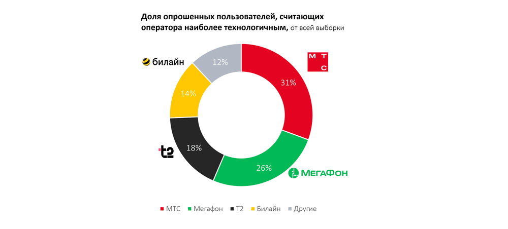 Аналитики составили рейтинг технологичности российских операторов связи. Объектами исследования стали пять отечественных компаний. Лидер рейтинга, МТС, набрала 79% из 100. На втором месте рейтинга расположился «Мегафон» (64%), на третьем — «Билайн» (59%). В рейтинге также присутствуют Т2 и «Ростелеком».
