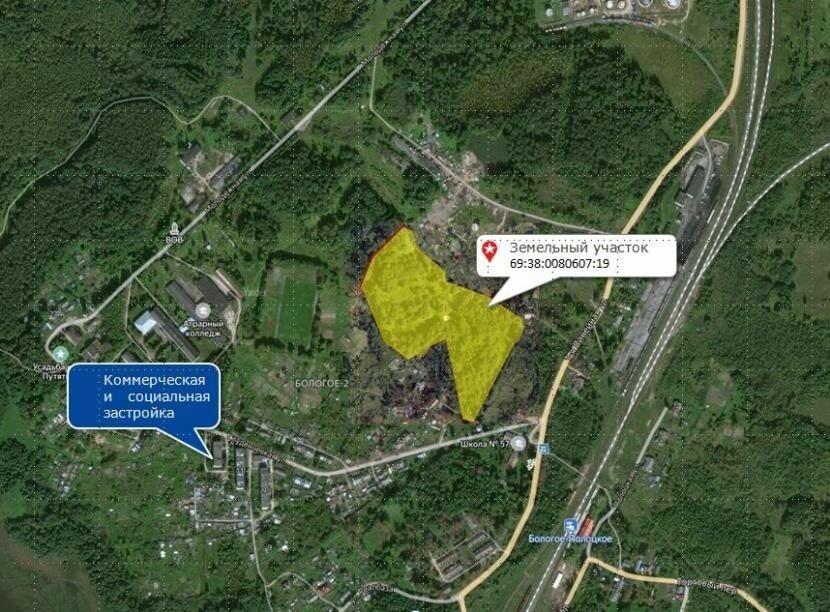 Участок расположен в районе с устоявшейся инфраструктурой, вблизи учебных заведений, магазинов и железнодорожной станции «Бологое-Полоцкое», что может являться преимуществом для будущего объекта, ориентированного, например, на прием посетителей. Ровный рельеф и правильная форма территории упрощают процесс будущего проектирования и строительства.