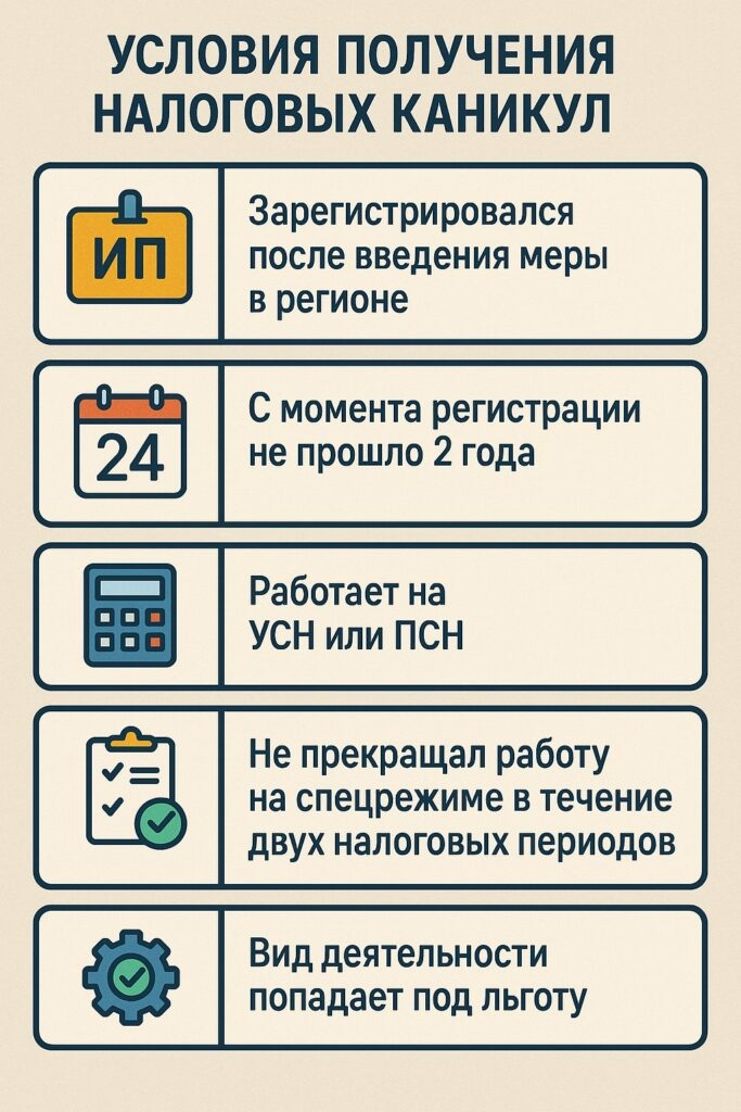 «Налоговые каникулы – это мера поддержки ИП, которые на ограниченный период получают возможность платить налог по УСН или патенту по ставке 0%. Это действительно эффективный инструмент для малого бизнеса, особенно чувствительного к любым экономическим колебаниям. Каникулы позволяют снизить расходы на старте и сэкономить на налогах в первые два года, когда компания только ищет свою нишу, еще не вышла на окупаемость и нуждается в максимальной поддержке», — обратил внимание генеральный директор бухгалтерии для бизнеса «Мое дело» Дмитрий Богод.